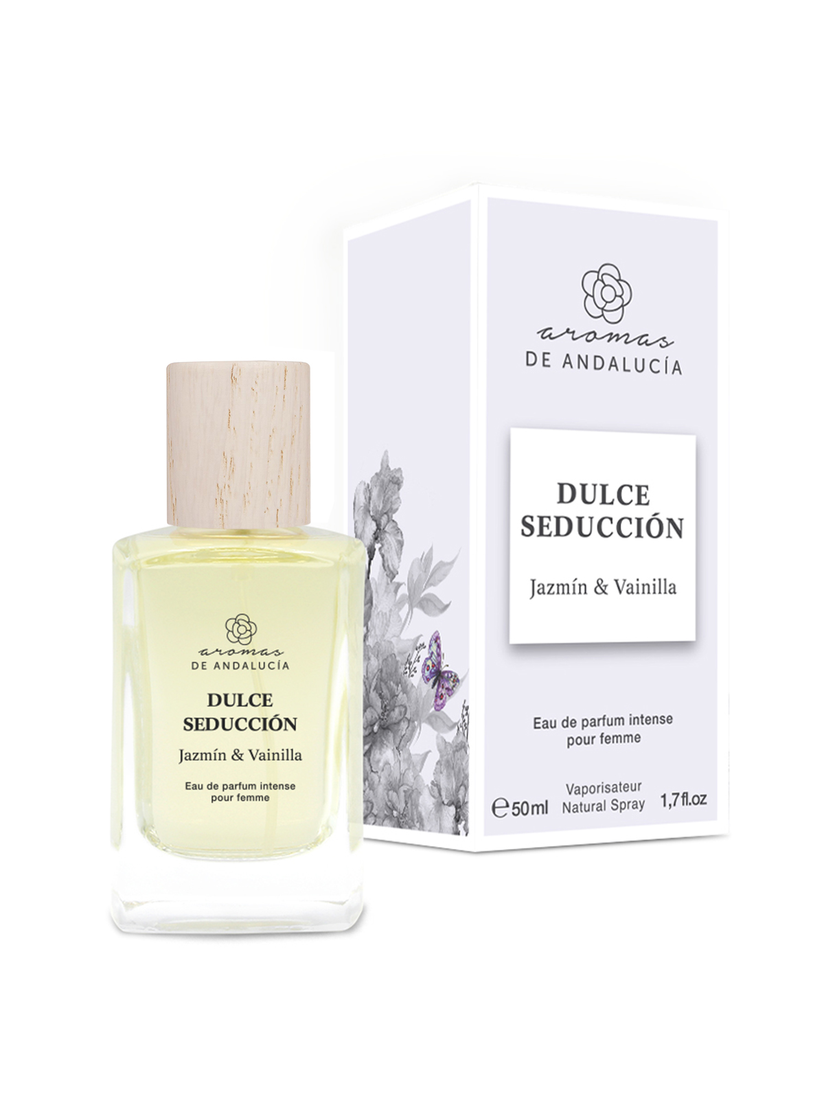 Un perfume femenino que seduce con solo olerlo. ‘Dulce seducción’ es un aroma cálido e intenso con notas de almendras, cacao y canela que se complementan a la perfección con notas de cuerpo más florales como el jazmín y el azahar, tan reconocidas en la perfumería.